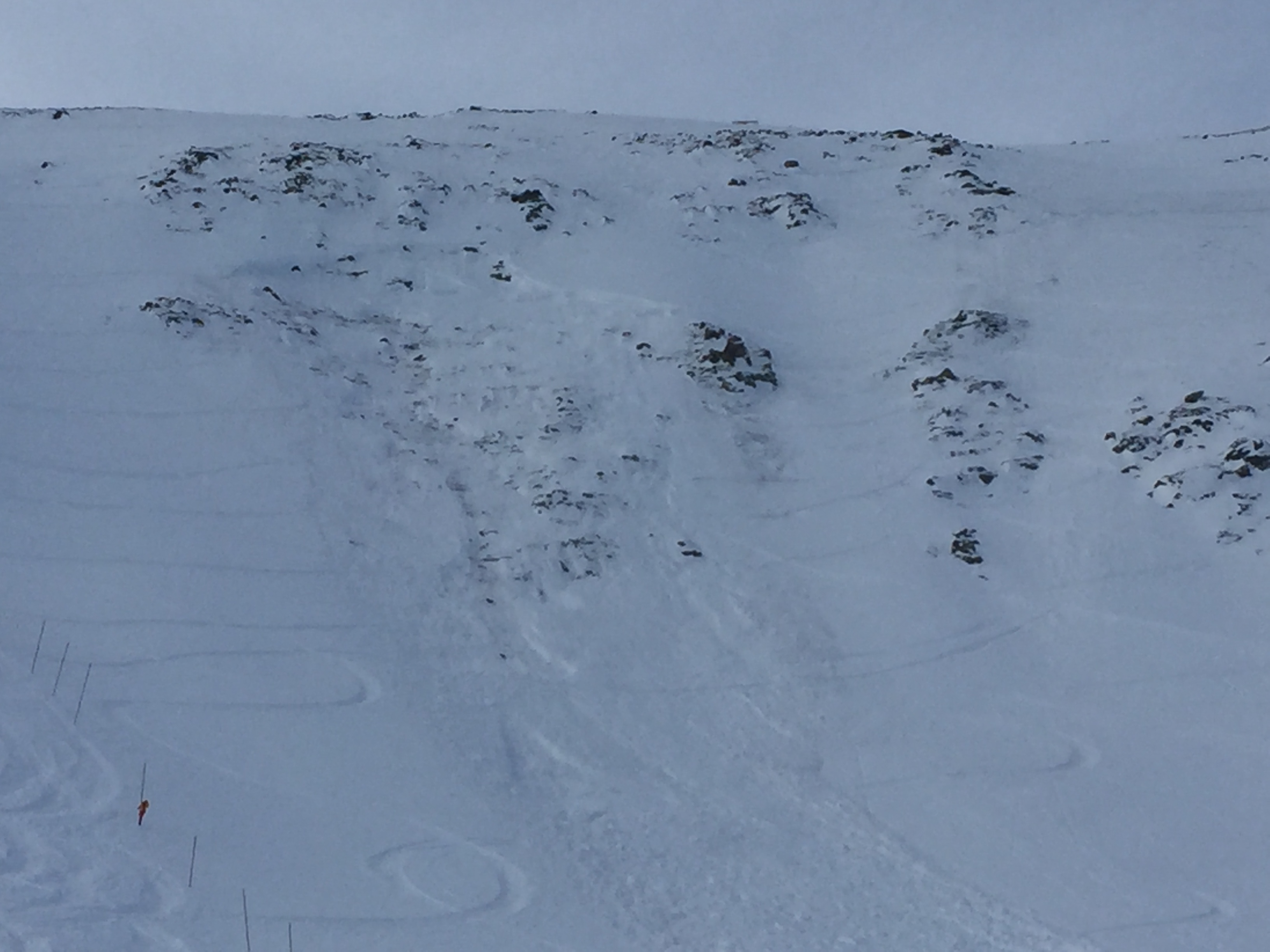 Most members of the two separate parties had already put their helmets on during the discussion about the increasing avalanche danger. As a result, their backpacks were off when the avalanche occurred, and what gear they had was scattered across the slope. The slide was 40m wide and ran for 250m. We were unable to get a fracture depth or failure plane, but suspected it to be the October rain crust located just above the ground.