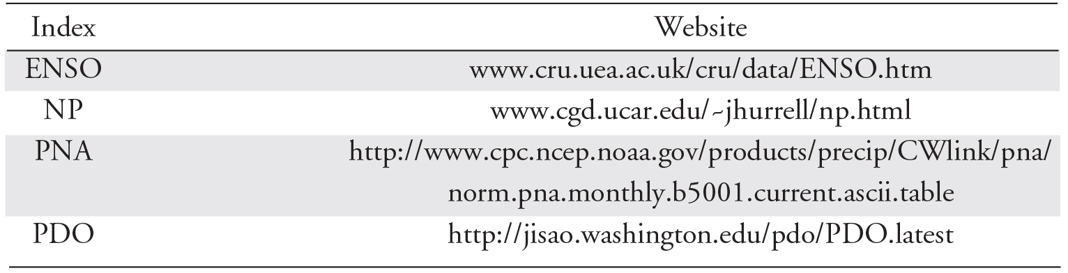Table 1 – Websites used to obtain climatic index data
