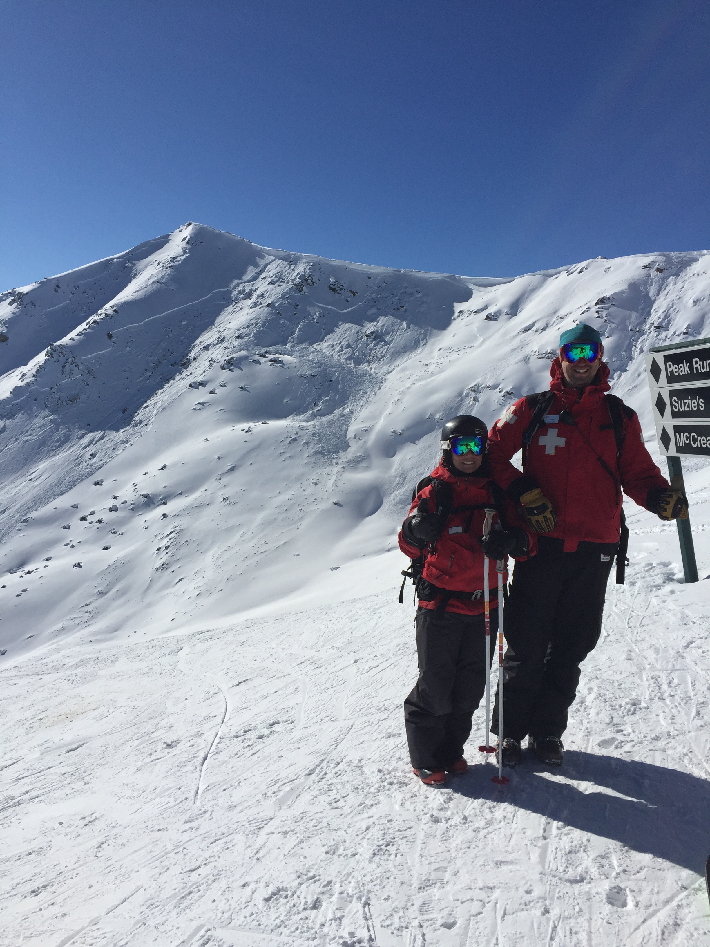 Of the six people hit, two remained on the surface, two were partial burials with their heads above the surface, and two were buried face down. The first person buried face down was able to self-extricate and clear their own airway, but the second was located 100m downslope with only part of a boot sticking out. This person was dug out using hands, helmets and a few ice tools that the two parties still had with them. The victim was unresponsive and the group initiated artificial respirations/CPR and pressed the emergency notification on their personal locator beacon. The victim recovered a few minutes later and amazingly was able to walk out on their own a short while later. No one in the group suffered any major injuries.